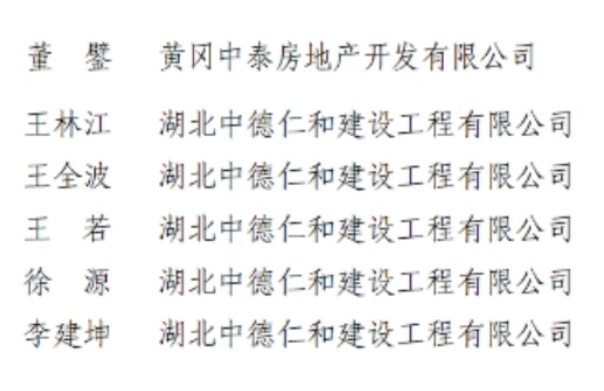 (綜合中泰地產、中德仁和公司訊) 7月23日,黃岡市職稱改革領導小組辦公室發出通知(黃職改辦【2024】7號),根據2024年度工程技術中級專業技術職務任職資格評審結果,批準229人取得任職資格,其中工程師203人、助理工程師26人。中信仁和體系兩家公司組織相關人員參加了本次專業技術職務評定申報,6人順利獲評為工程師,其中中泰地產公司1人、中德仁和公司5人。